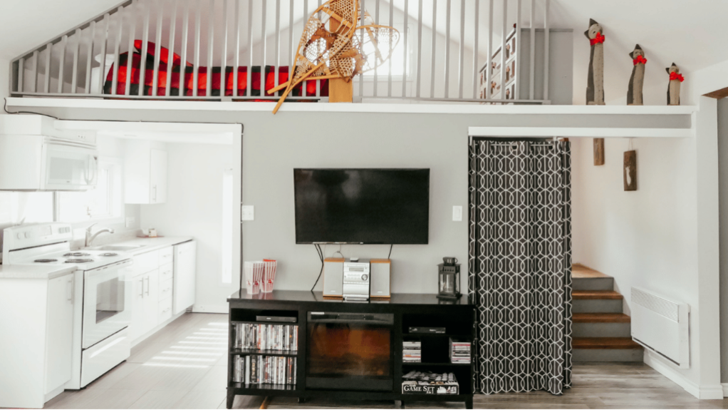 Le salon propose un espace détente agréable avec télévision et connexion Wi-Fi, idéal pour relaxer après une journée à l’extérieur. Une salle de bain complète ainsi qu’une salle de lavage avec laveuse et sécheuse sont également disponibles pour rendre votre séjour pratique et sans souci.