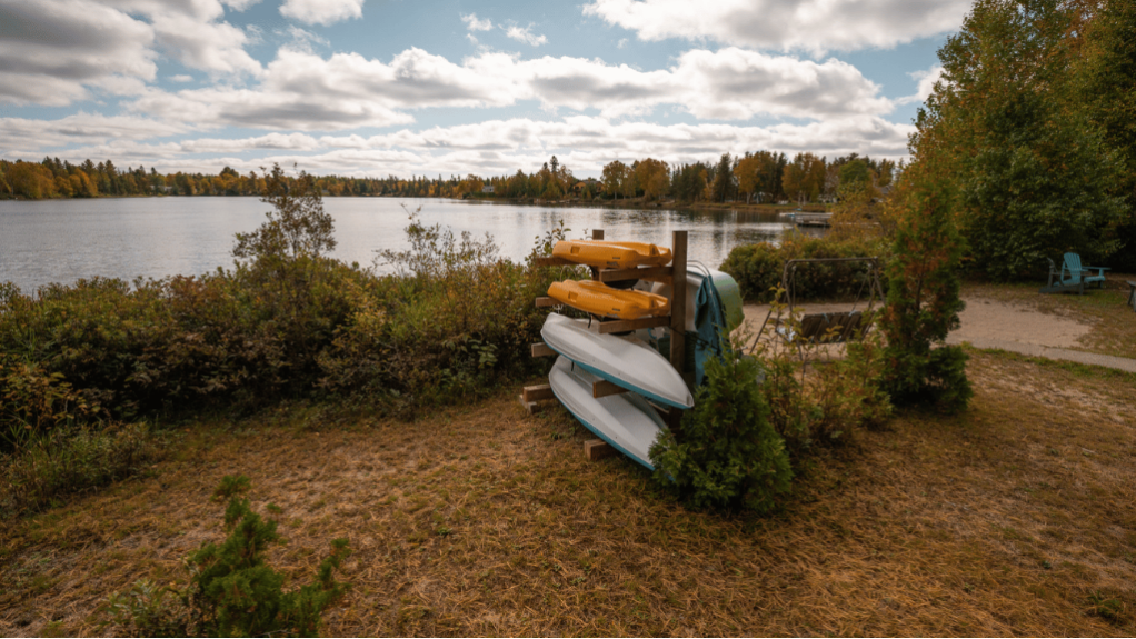 À l’extérieur, profitez du grand terrain aménagé, de l’accès direct au lac et des installations pour passer du temps au bord de l’eau. L’endroit est parfait pour les amateurs de nature, de baignade, de kayak ou simplement pour admirer le coucher du soleil sur le lac.