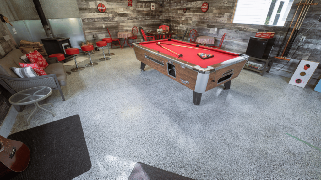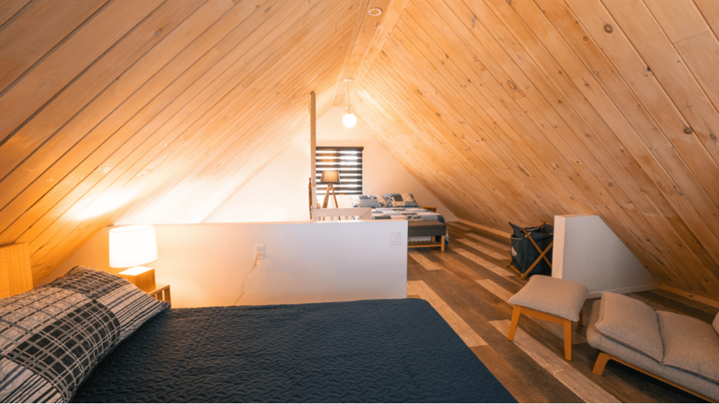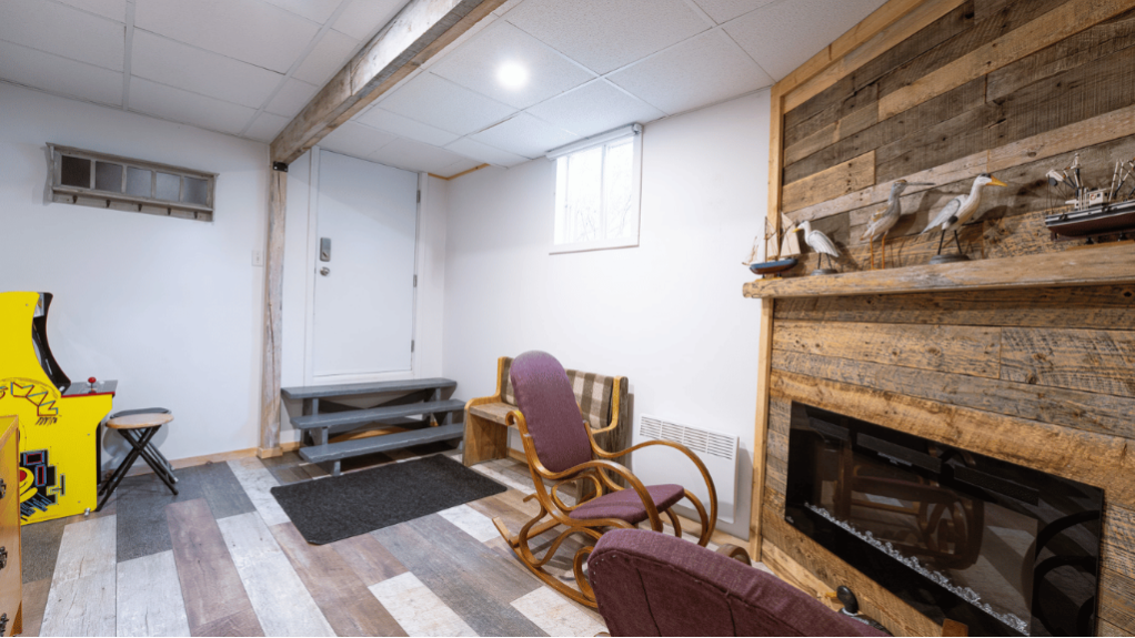 Pour les moments de divertissement, le chalet comprend une aire de jeux intérieure ainsi qu’un espace de type garage « man cave » avec jeux et coin détente, parfait pour les soirées entre amis.