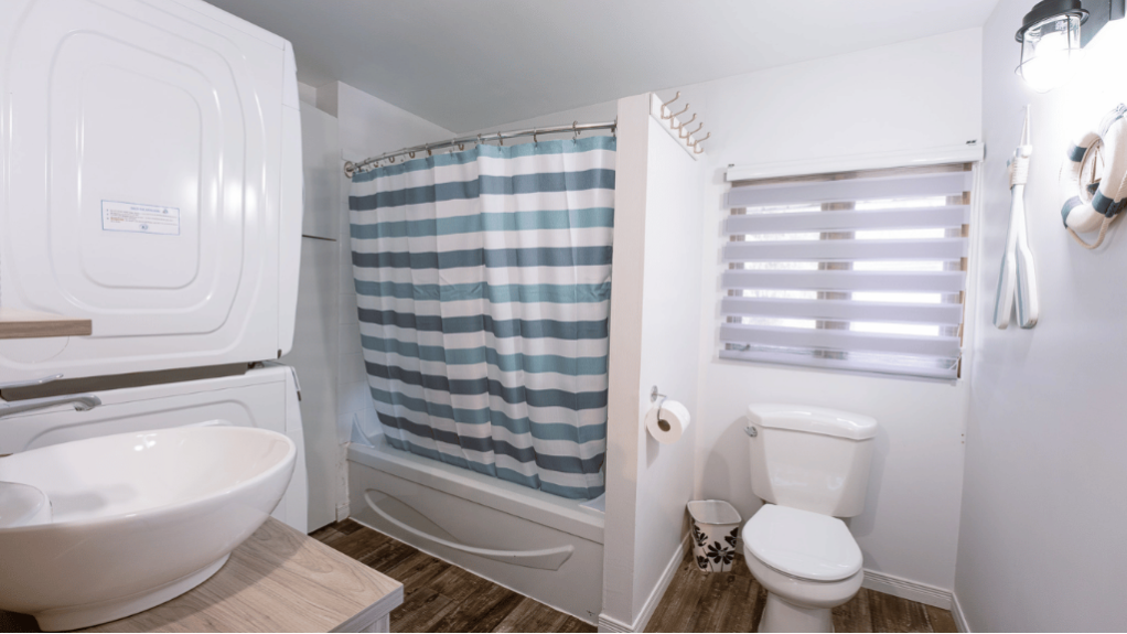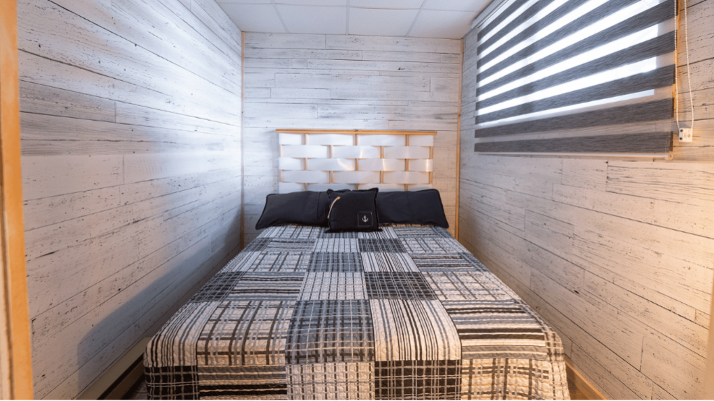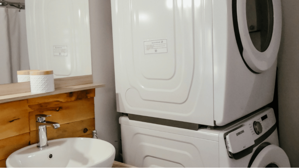 Le salon propose un espace détente chaleureux avec télévision et connexion Wi-Fi. Une salle de bain complète ainsi qu’une salle de lavage avec laveuse et sécheuse sont également disponibles pour un séjour pratique et sans souci.